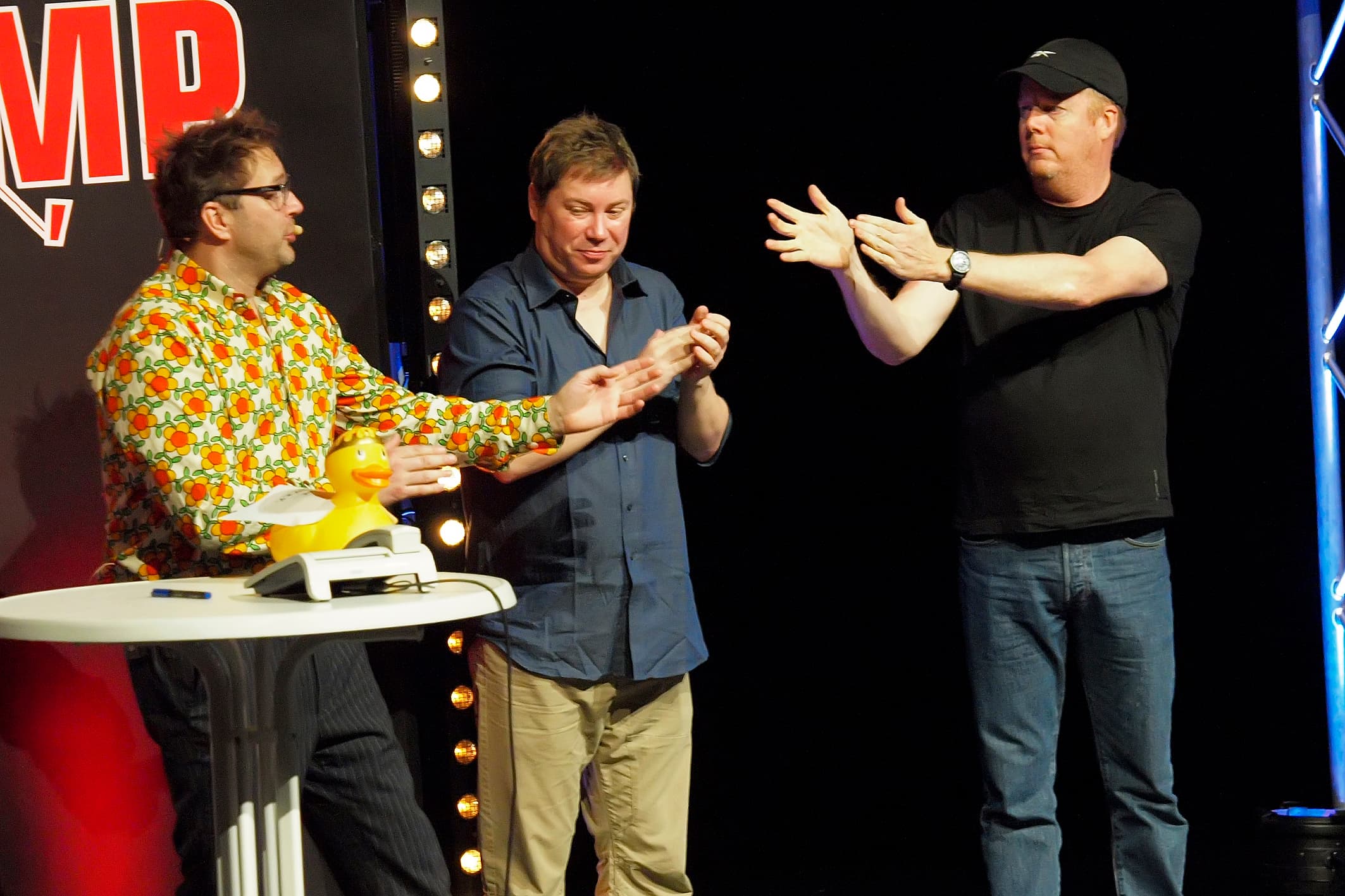 Unser nächster Redner, meine Damen und Herren, ist ein Amerikaner, der seit über 25 Jahren im Rheinland lebt. Aber keine Angst, er spricht sehr gut Deutsch und das, obwohl er Amerikaner ist. Er bewundert nach wie vor unsere deutsche Kultur, obwohl er sie nicht immer versteht. Begrüßen Sie mit mir den jecken Ami John Doyle.